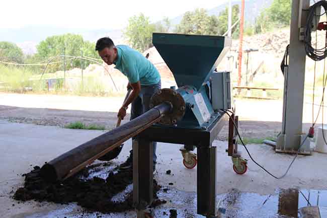 Eskişehir’de zeytinyağı üretimi yapan Emre Can, yağ yapımından arta kalan çekirdek ve posanın atık olmasını engelleyerek doğal kömür üretti.
