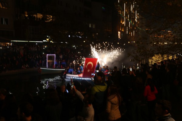 Eskişehir Porsuk Çayı üzerinde fener alayı ve havai fişek gösterisi düzenlendi
