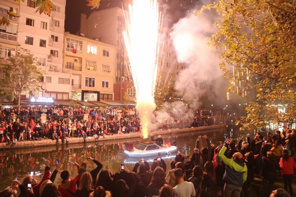 Eskişehir Porsuk Çayı üzerinde fener alayı ve havai fişek gösterisi düzenlendi