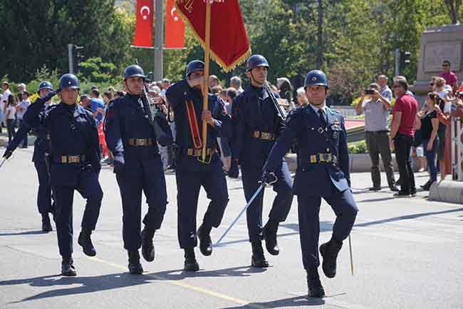 Eskişehir’de 30 Ağustos Zafer Bayramı düzenlenen törenle coşkuyla kutlandı. Tüm Türkiye’de olduğu gibi Eskişehir’de de 30 Ağustos Zafer Bayramı coşkuyla kutlandı. Atatürk Bulvarı’nda gerçekleştirilen tören, İstiklal Marşı’nın okunmasıyla başladı. Ardından Atatürk Bulvarı üzerinde kurulan kutlama alanında askerler, törene katılan vatandaşları ve protokolü selamlayarak Zafer Bayramı'nı kutladı.