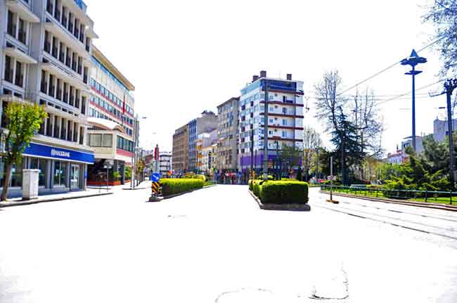 Hafta sonu uygulanan 48 saatlik sokağa çıkma kısıtlamasının ikinci gününde de Eskişehirliler kurallara uyarak, sokağa çıkmadı. Şehrin sokakları adeta sessizliğe büründü. Fotoğraflar: MELTEM KARAKAŞ KAYA
