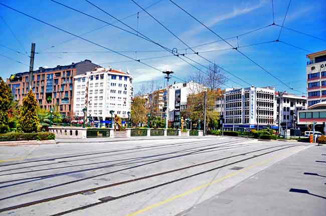 Hafta sonu uygulanan 48 saatlik sokağa çıkma kısıtlamasının ikinci gününde de Eskişehirliler kurallara uyarak, sokağa çıkmadı. Şehrin sokakları adeta sessizliğe büründü. Fotoğraflar: MELTEM KARAKAŞ KAYA