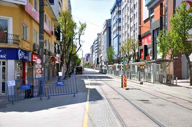 Hafta sonu uygulanan 48 saatlik sokağa çıkma kısıtlamasının ikinci gününde de Eskişehirliler kurallara uyarak, sokağa çıkmadı. Şehrin sokakları adeta sessizliğe büründü. Fotoğraflar: MELTEM KARAKAŞ KAYA