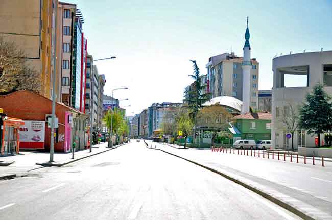 Hafta sonu uygulanan 48 saatlik sokağa çıkma kısıtlamasının ikinci gününde de Eskişehirliler kurallara uyarak, sokağa çıkmadı. Şehrin sokakları adeta sessizliğe büründü. Fotoğraflar: MELTEM KARAKAŞ KAYA