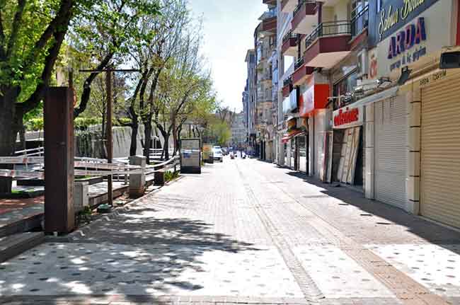 Hafta sonu uygulanan 48 saatlik sokağa çıkma kısıtlamasının ikinci gününde de Eskişehirliler kurallara uyarak, sokağa çıkmadı. Şehrin sokakları adeta sessizliğe büründü. Fotoğraflar: MELTEM KARAKAŞ KAYA