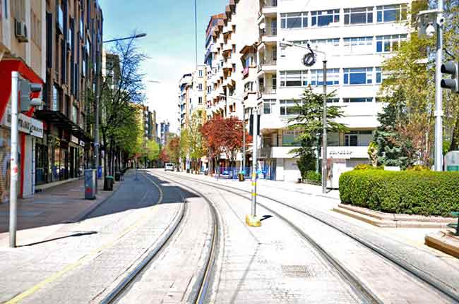 Hafta sonu uygulanan 48 saatlik sokağa çıkma kısıtlamasının ikinci gününde de Eskişehirliler kurallara uyarak, sokağa çıkmadı. Şehrin sokakları adeta sessizliğe büründü. Fotoğraflar: MELTEM KARAKAŞ KAYA