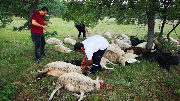 Eskişehir’de yıldırım düşmesi sonucunda bir ağacın altında korunan 55 koyun telef oldu.