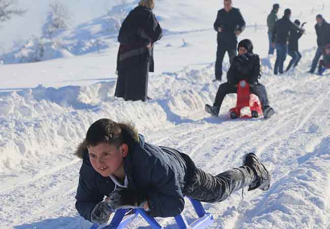 Geçen hafta ilçeye yoğun kar yağdığını dile getiren Bozkurt, "Bir metreyi geçen bir kar yağışı aldı ilçemiz. Bu bir nimettir. Biz de bu nimetin keyfini çıkarıyoruz." ifadelerini kullandı.