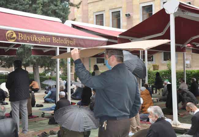 Koronavirüs tedbirleri kapsamında 16 Mart’tan bu yana kapalı olan camilerden bir kısmı bugün Cuma namazıyla beraber ibadete açıldı. 74 gün sonra camide ibadet edebilmenin mutluluğunu yaşayan yüzlerce kişi, yağan yağmura aldırış etmeden hijyen ve sosyal mesafe kuralları çerçevesinde namazını kıldı. (Haber ve fotoğraflar: Hilal Köver)