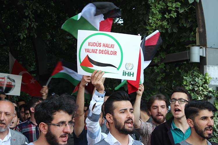 Eskişehir'de bir grup vatandaş ABD'nin İsrail Büyükelçiliğini Kudüs'e taşıması ve İsrail askerlerinin Filistinli 59 kişiyi katletmesi sebebiyle gıyabi cenaze namazı sonrasında yürüyüş gerçekleştirdi.
