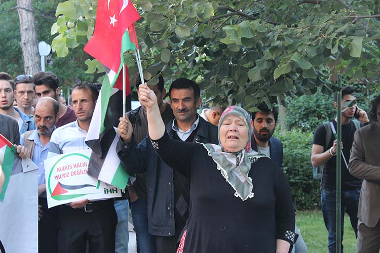 Eskişehir'de bir grup vatandaş ABD'nin İsrail Büyükelçiliğini Kudüs'e taşıması ve İsrail askerlerinin Filistinli 59 kişiyi katletmesi sebebiyle gıyabi cenaze namazı sonrasında yürüyüş gerçekleştirdi.