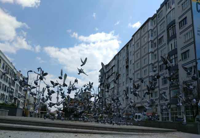 Sürekli olarak vatandaşların yem atarak beslediği bölgede yine dostlarını arayan güvercinler...
