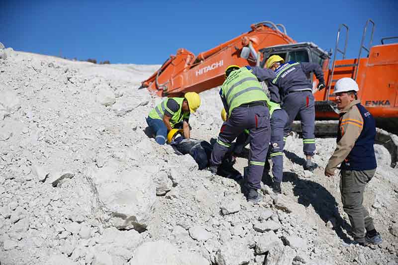 AFAD koordinasyonunda, Seyitgazi ilçesindeki Eti Maden Kırka Bor İşletme Müdürlüğüne bağlı açık maden ocağında heyelan ve yangın tatbikatı yapıldı.