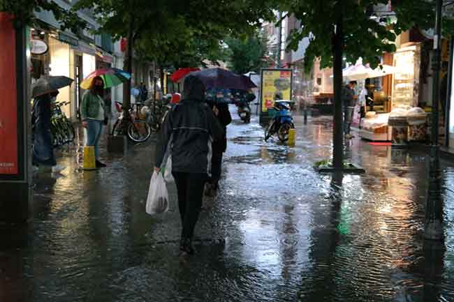 Islanmamak için koşuşturan, bir yerlere sığınmaya çalışan insanlar, adeta sel sularının aktığı caddeleri, su birikintilerini geçmeye çalışan araçlar dikkati çekti.
