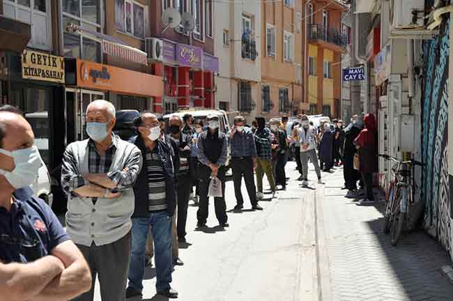 Eskişehir’de bir tatlıcının önünde tam kapanma olmasına rağmen oluşan kuyruk görenleri şaşkına çevirirken polis ekipleri mesafe konusunda kalabalığı uyardı, zaman zaman sıra tartışması yaşandı.