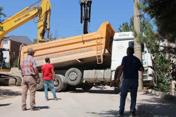 “Daha feci bir olay olabilirdi” diyen Yalçınsoy, “Saat 9.30 sıralarında bir gümbürtü çıktı. Gümbürtüye çıktık. Allah korudu. 2-3 dakika önce su arabası vardı. Daha feci bir olay olabilirdi. Burası zaten dar bir sokak. 20 tonluk bir tır. Apartmanda 20 hane var.