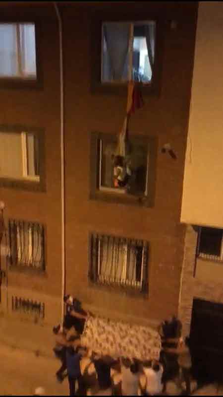 Eskişehir'de psikolojik rahatsızlığı bulduğu iddia edilen kadın, evinin camından sarkıttığı çarşaf ile binadan inmeye çalışırken aşağı düştü. O anlar vatandaşların cep telefonu kameralarına saniye saniye yansıdı.