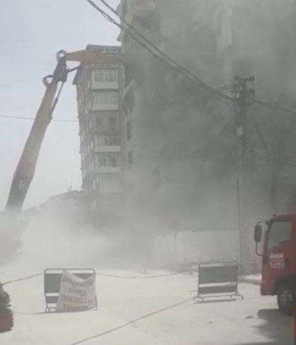 Öte yandan yıkımı yapılan binada çalışan inşaat işçilerinden biri ise, şikâyetlerin gelme sebebini anlattı. Yıkımı durduklarını belirten işçi, "Bu riskli bir binaydı. Önceki gün gece 3 buçukta binanın yarısı çöktü. Göçük yeri de hala duruyor...