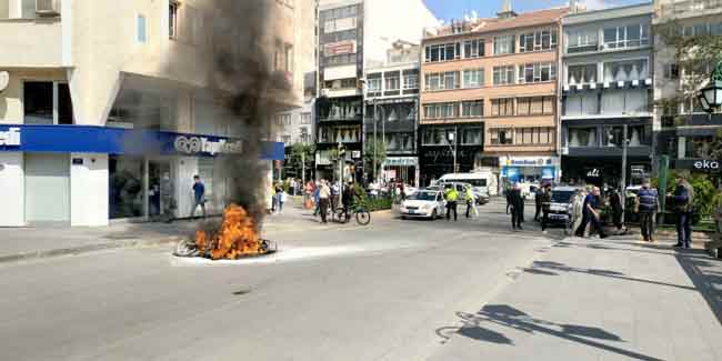 Eskişehir'de trafik polisinin uygulama noktasında durdurduğu ehliyetsiz sürücü motosikletini yaktı.