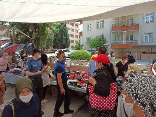Eskişehir'de de pazar alışverişine dalan kadınlar sosyal mesafeyi unuttu.