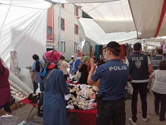 Eskişehir'de de pazar alışverişine dalan kadınlar sosyal mesafeyi unuttu.