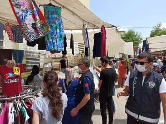 Eskişehir'de de pazar alışverişine dalan kadınlar sosyal mesafeyi unuttu.