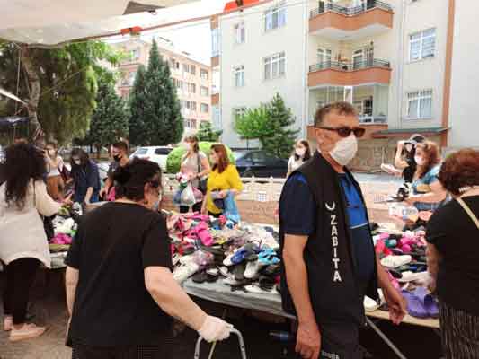 Eskişehir'de de pazar alışverişine dalan kadınlar sosyal mesafeyi unuttu.