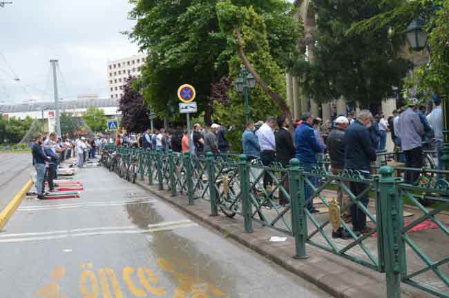 Eskişehir’de bugün Cuma namazından hemen önce aniden yağan yağmur, vatandaşları ıslak zeminin üstünde namaz kılmak zorunda bıraktı.