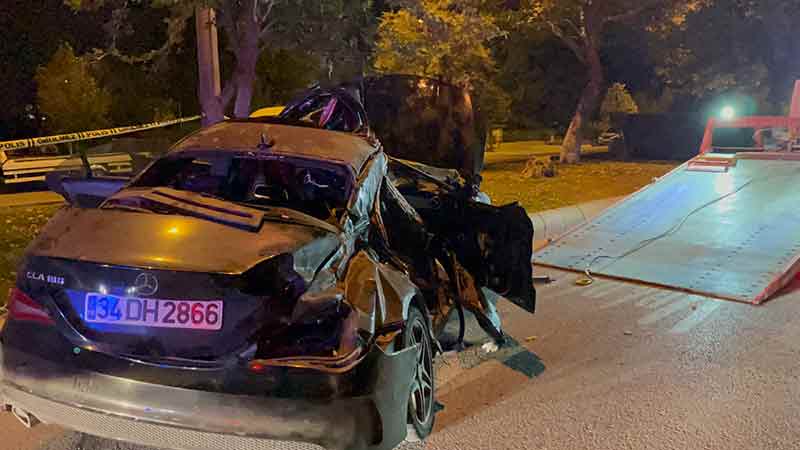 Eskişehir’de park halindeki kamyona çarptıktan sonra orta refüje çıkarak durabilen lüks araçta bulunan 5 kişi yaralandı.