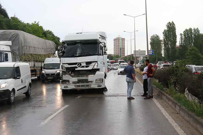 Aynı anda meydana gelen diğer bir trafik kazasında ise Bursa istikametine ilerleyen 66 LM 957 çekici plakalı tır, önünde seyreden başka bir tıra çarptı.