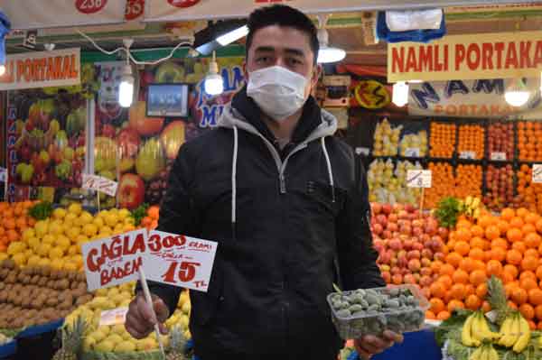 Eskişehir Kurtuluş Kapalı Pazarında manav esnafı olarak çalışan Emin Özkaya, mevsimin ilk çağlası hakkında bilgi verdi.