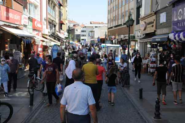 Bayrama bir gün kala kent merkezinde yoğun bir kalabalık gözlendi. Bayram alışverişi yapmak isteyen vatandaşlar, kentin uğrak yerlerindeki cadde ve sokakları, sosyal mesafeye pek de dikkat etmeden doldurdu.