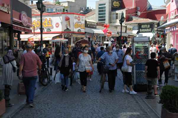 Hazırlıklarını son güne bırakanlar sosyal mesafeye aldırış etmeden alışverişlerini yaptı.