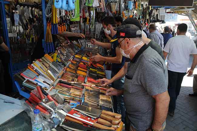 Eskişehir'de Kurban Bayramı’nda bıçaklarını biletmeyi son ana bırakan vatandaşlar, bıçakçılar çarşısında yoğunluk oluşturdu