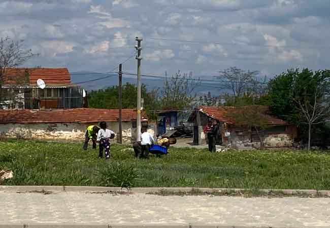 Mahallede sosyal mesafeyi de ayarlayamayan çocuklar ellerinde bulunan kasaları topladıkları otlarla doldurdu.