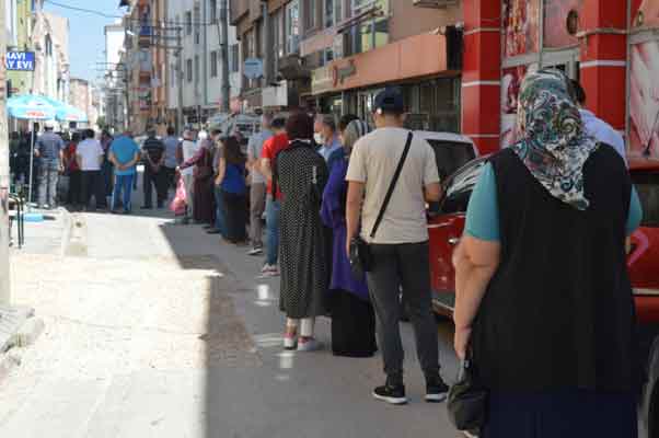 Kurban Bayramına sayılı günler kalan aynı mekânın önünde yine kuyruk oluşmaya başladı. Son birkaç gündür oluşan kuyruk, bugün 39 dereceye ulaşan hava sıcaklıklarına rağmen metrelerce uzadı.