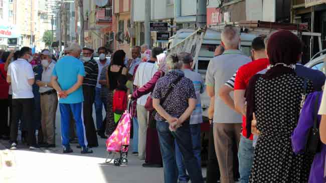 Eskişehir’de onlarca vatandaş, bir tatlıcının sattığı ucuz baklavadan alabilmek için 39 derece hava sıcaklığını umursamadan saatlerce kuyrukta bekledi.