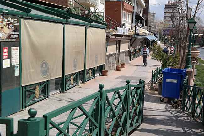 Eskişehir’in işlek caddesi Adalar’da bulunan bütün kafelerin kapalı olduğu görüldü. Gel-al servisi yapanlar hariç kapalı kalan kafeler, Adalar’daki insan sayısını da düşürdü. Caddedeki normal zamandaki kalabalık görüntüye kıyasla fark edilen boşluk göze çarptı.