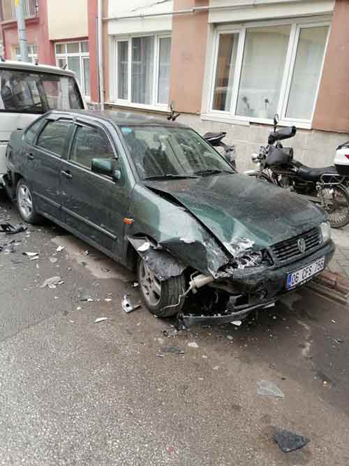 Eskişehir’de park halindeyken bir aracın çarpıp kaçtığı otomobil ağır hasar aldı.