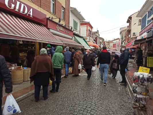 Ramazan öncesi Eskişehir’deki bazı dükkanlar önünde uzun alışveriş kuyrukları oluşturan vatandaşlar zaman zaman sosyal mesafeyi unuttu.