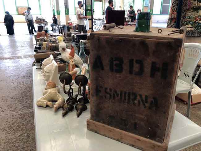 Antika pazarında tezgahını açan Ergün İzci’nin elindeki eser, diğer ürünlere göre daha çok ilgi çekiyor. 1800’lü yılların sonlarında veya 1900’lü yılların başlarında kullanıldığı tahmin edilen ve İspanya’dan İzmir’e gönderilen damacana pazarın nadir parçalarından birisi olarak yoğun ilgi görüyor.