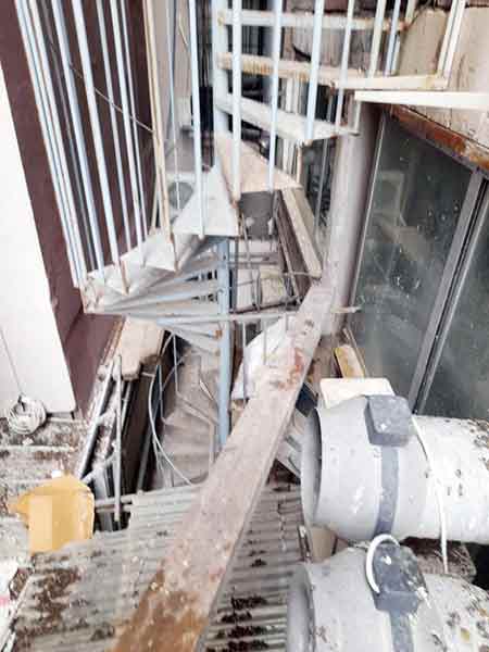 Şair Fuzuli Caddesi’ndeki 5 katlı binada hizmet veren sürücü kursunun arka cephesindeki yönetmeliklere uymayan yangın merdiveni görenleri şaşkına çevirdi. Olası bir yangın olayında hiçbir işe yaramayacak olan bu merdivene kimin nasıl ruhsat verdiği sorusu akıllara geldi.