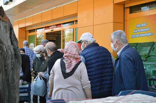 Eskişehir'deki bir zincir marketin önünde ucuz satılan asma yapraklarını almak isteyen vatandaşlar arasında oluşan izdiham sosyal mesafeyi unutturdu.