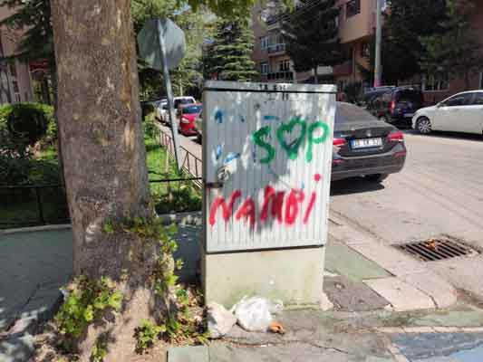 Vişnelik Mahallesi’ndeki farklı noktalarda bulunan elektrik trafoları kimliği belirsiz kişilerce boyanıyor.