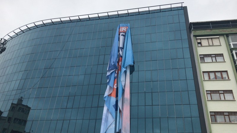 AK Parti’nin Eskişehir Büyükşehir Belediye Başkan Adayı Burhan Sakallı’nın Seçim Koordinasyon Merkezinin olduğu binada asılı duran seçim afişi, izinsiz olduğu iddiasıyla indirildi.