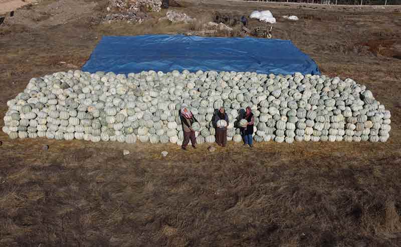 "Bal kabaklarımız ata tohumu, büyük dedelerimizden gelmiş. Geçen yıl farklı tohum ektik, hiç yapmadı. Bunlara ilk döllenmede çapa ile işaret koyarız ve tohum alırız. Bu bal kabağı hem dayanıklıdır hem de kuru olur. İstanbul, Bursa, İzmir gibi büyükşehirlerden gelip götürürler. Biz de Kadın Üretici Ürün Satış Noktası'na götürüyoruz."