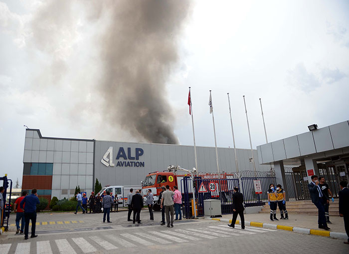 Eskişehir Organize Sanayi Bölgesi’ndeki Alp Havacılık’ın fabrikasında yangın çıktı.