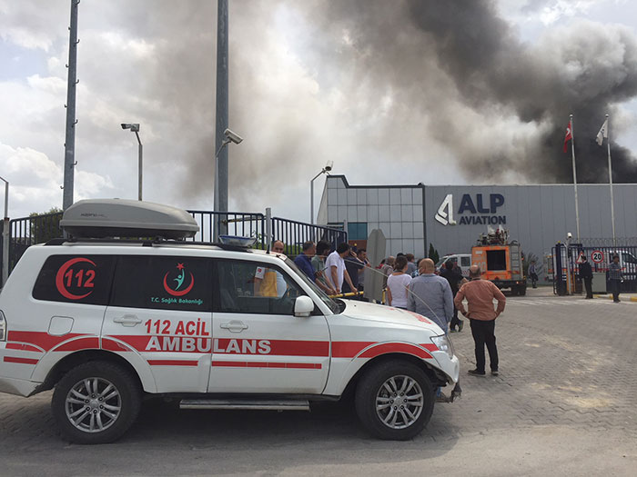 Eskişehir Organize Sanayi Bölgesi’ndeki Alp Havacılık’ın fabrikasında yangın çıktı.