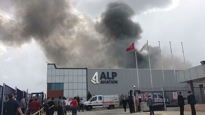 Eskişehir Organize Sanayi Bölgesi’ndeki Alp Havacılık’ın fabrikasında yangın çıktı.