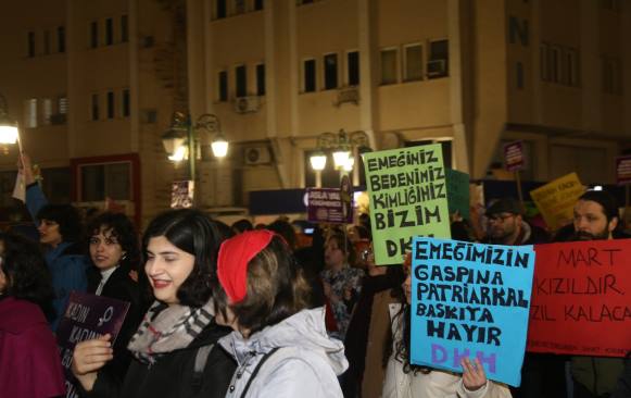 Eskişehir Kadın platformu tarafından düzenlenen etkinlikte, kadınlar özgür ve eşit bir yaşam için yürüdü. Üyeler, "Dünya yerinden oynar kadınlar özgür olsa, kadınlar sokağa haklarını almaya, asla yalnız yürümeyeceksin, bir kişi daha eksilmeyeceğiz" sloganları attı. Eskişehir Kadın Platformu tarafından düzenlenen 8 Mart Dünya Kadınlar Günü yürüyüşüne yüzlerce kadın katıldı. Espark önünde bir araya gelen kadınlar Adalar'a yürüdü. Platform adına açıklama yapan Berivan Özkara, "Tüm dünyada, tüm direngenliğimiz ve kararlılığımızla haykırıyoruz; gerçek eşitliğin ve özgürlüğün dünyasını istiyoruz, daha azını değil. Geçim zor, barınmak, ısınmak, giyinmek, yemek imkânsız... Bütün yük biz kadınların sırtında… İnsanca bir yaşam istiyoruz. İş yerinde, sokakta, okulda, evde can korkusuyla yaşamaya, tacizcilerin, istismarcıların, kadın katillerinin kollanmasına, 'işten atarız' tehditlerine, mobinge, tacize, baskıya, cinsiyet eşitsizliğinin derinleştirilmesine, sermaye iktidarına da tek adamına da artık yeter diyoruz. Şiddetsiz bir yaşam istiyoruz. Özgür bir yaşam istiyoruz. Sadece 2022 yılında 334 kadın katledilmiş 245 şüpheli kadın ölümü yaşanmışken şiddete karşı koruma mekanizmaları etkin uygulanmıyor, verilen yargı kararları ile failler cezasızlıkla ödüllendiriliyor, boşanmalara arabuluculuk getirilerek kadınların boşanabilmesinin önüne bir engel daha konuyor. Medeni kanun değiştirilerek yıllarca mücadele ederek kazandığımız haklarımız elimizden alınmak isteniyor. Erkek egemenliğine karşı mücadele eden politik kadınlara yönelen saldırılar da günbegün artıyor. Taciz, tecavüz, tutuklama, gözaltı saldırıları ile engelleyemedikleri kadınların özgürlük mücadelesini; hapishanelerde devrimci kadın tutsaklara yönelen kıyafet sınırlamaları, çıplak arama dayatmaları ile hasta kadın tutsakların sağlık hizmetine erişimlerinin engellenmesiyle, keyfi infaz yakmalarla, üniversite çevrelerinde kümelenen polis ve jandarmanın genç kadınları sistematik olarak taciz etmesiyle, gözaltında kadınlara özel olarak uygulanan sözlü-fiziksel şiddet ve cinsel işkenceyle, direnen barış annelerine ve kadın milletvekillerine uygulanan polis şiddeti ile geriletmeye çalışıyorlar" ifadelerini kullandı. MUHABİR - BERİVAN HALİS